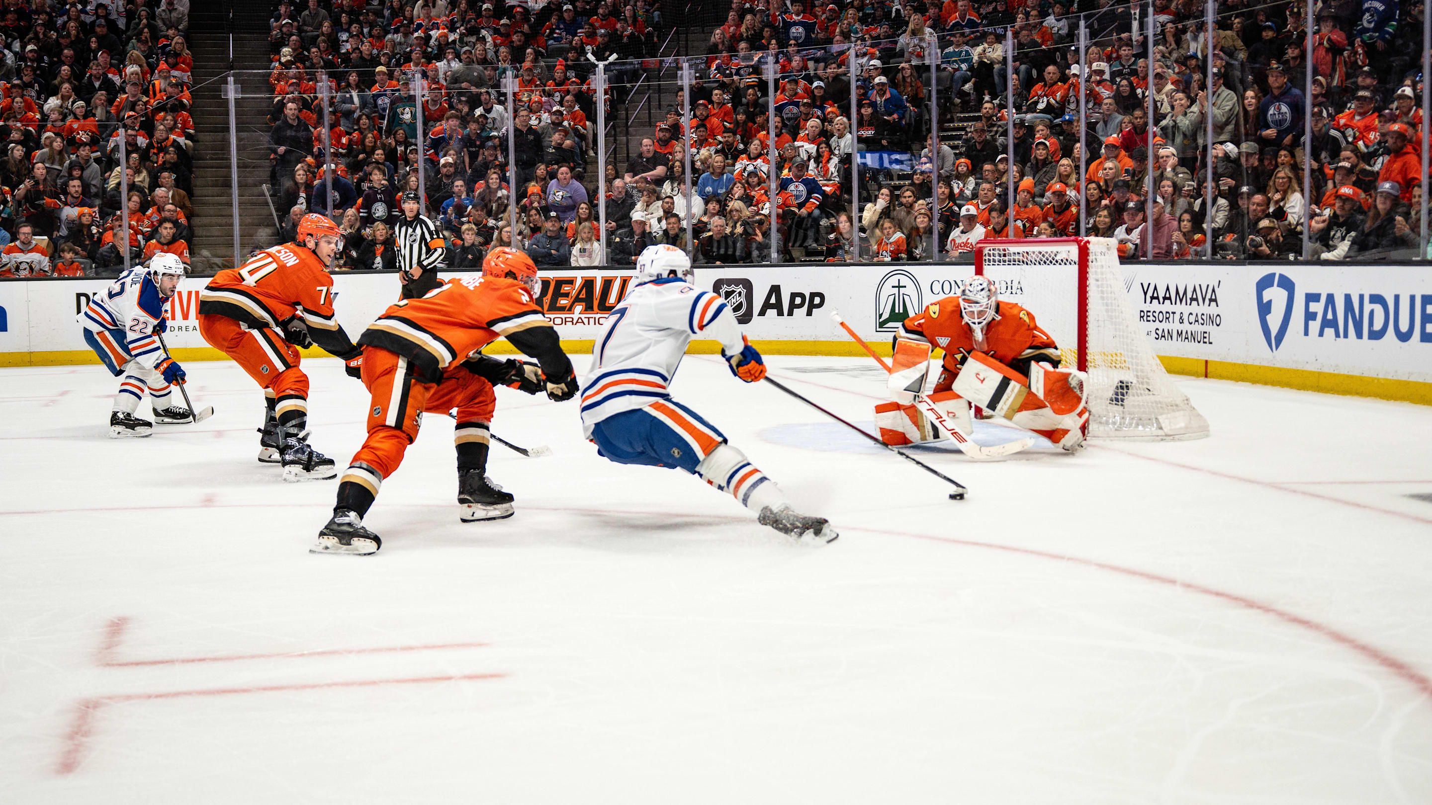 Curtis Foster opened the scoring on the PP when he shattered the peanut butter jar on the top shelf. Again on the PP, Jordan Eberle calmly walked the crease line to fool Cory Schnieder short side. Finally, Omark swooped in unattended to tap in Hartikainen's pass to earn his 5th goal of the season.